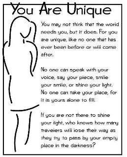 As a new week begins, I encourage you to wrap your loving arms around YOU and embrace how unique YOU are! YOU matter in this world and YOU make a difference in the lives of others every day just by being YOU!